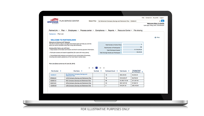 PartnerLink is designed to give our advisor and third-party administrator partners an in-depth view into our recordkeeping system to more efficiently service their clients. PartnerLink empowers our partners to have accurate and current information across their business by providing: